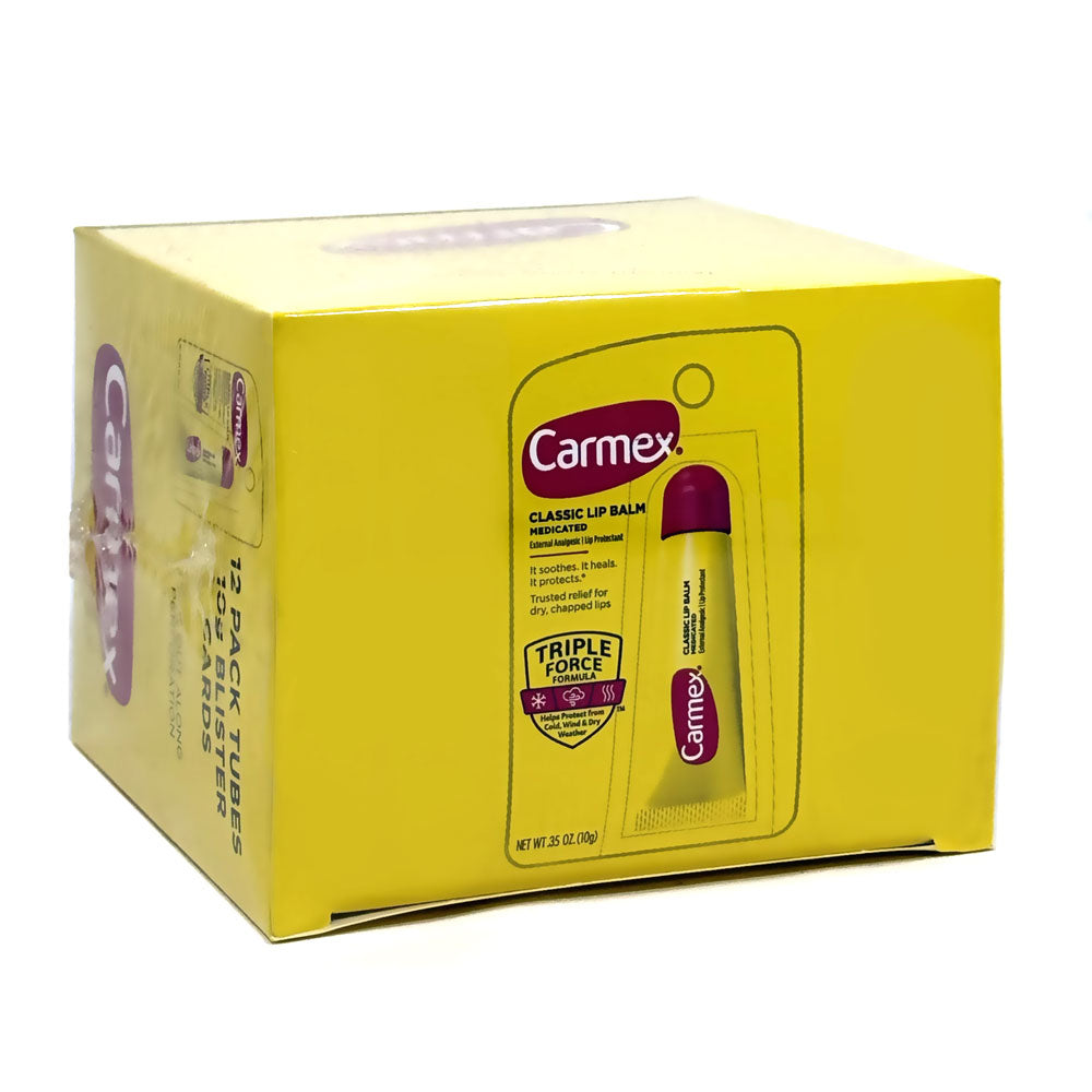 Carmex Classic Lip Balm 12/10g - Comes in a case of 12 tubes, each with 10 g. Easy to stock on shelves and a reliable everyday retail item.