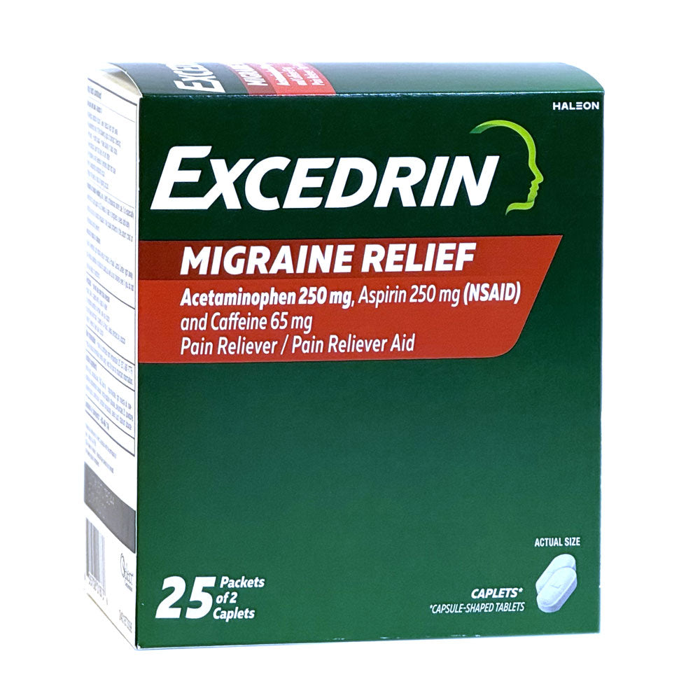 Excedrin Extra Strength 25/2ct Display contains 25 packs, each with 2 caplets.
