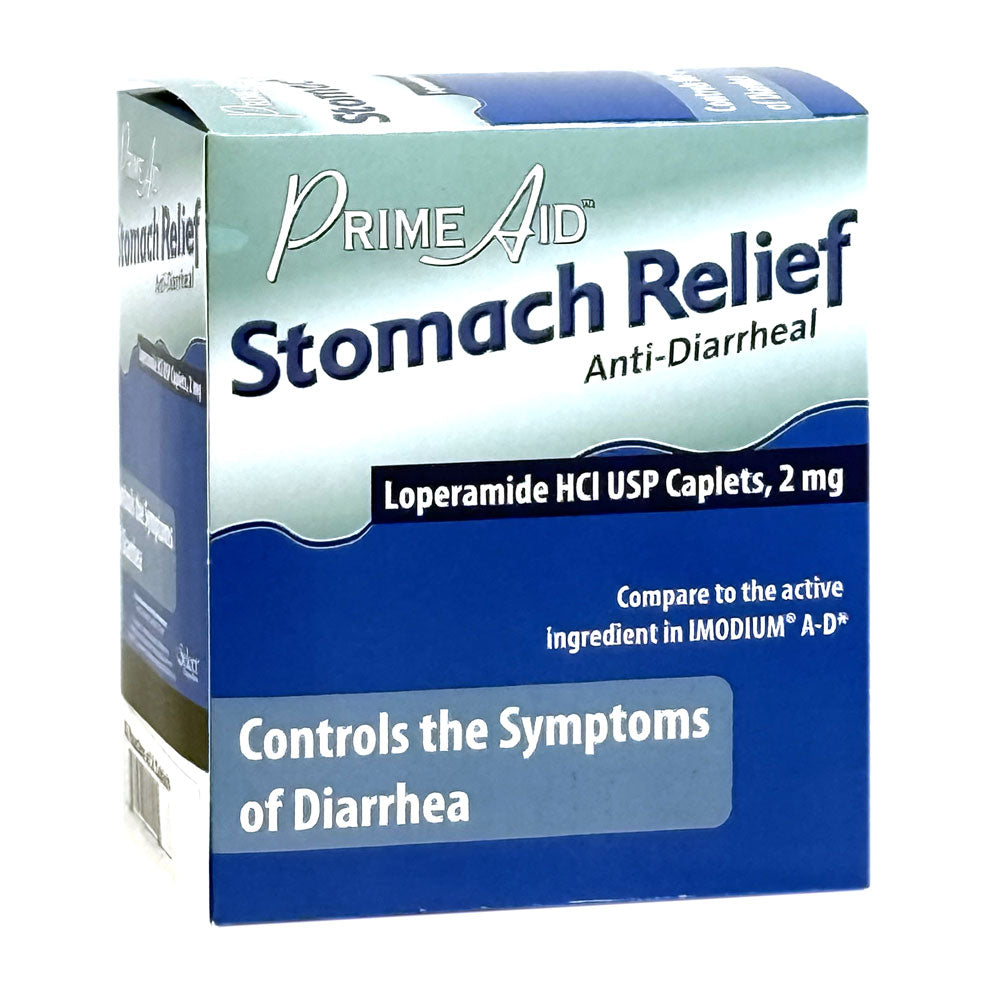 Prime Aid Stomach Relief Display contains 25 packs, each with 2 tablets. It is designed for retail display and is a good option for on-the-go sales.