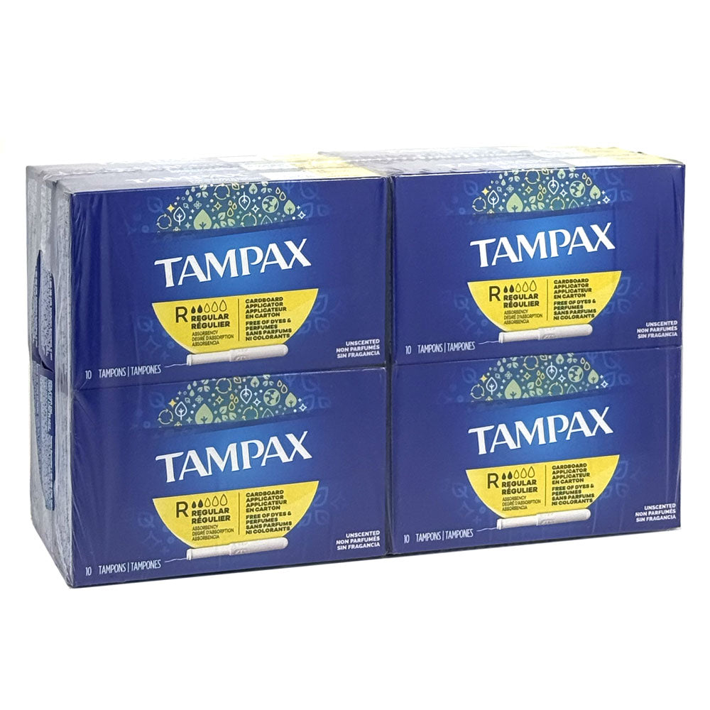 Tampax Regular comes in a case of 4 boxes, each with 10 tampons. Easy to stock on shelves and a reliable everyday retail item.