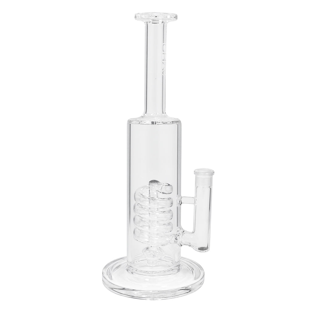 Grav Clear Coil Showerhead Water Pipe Stands 12.25 inches tall and 4.75 inches wide. Designed to fit a 14mm male bowl.