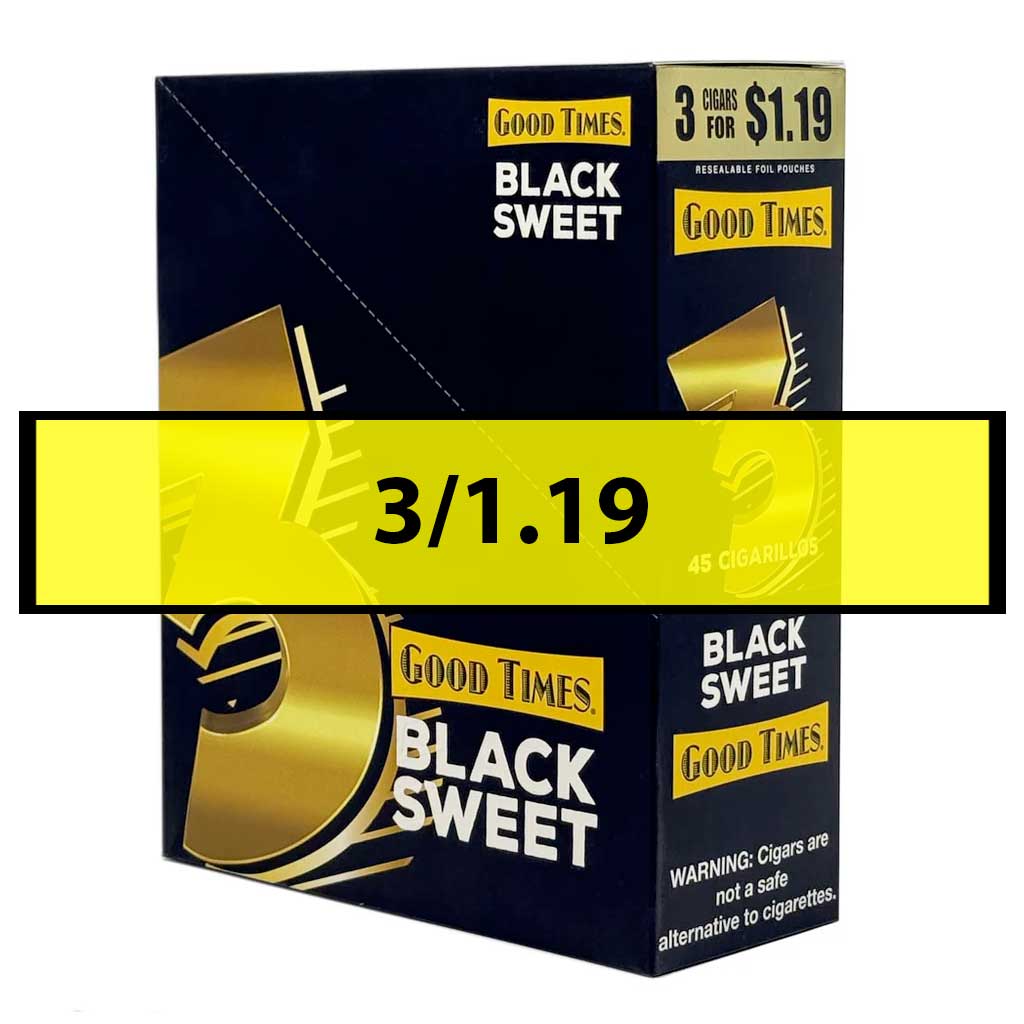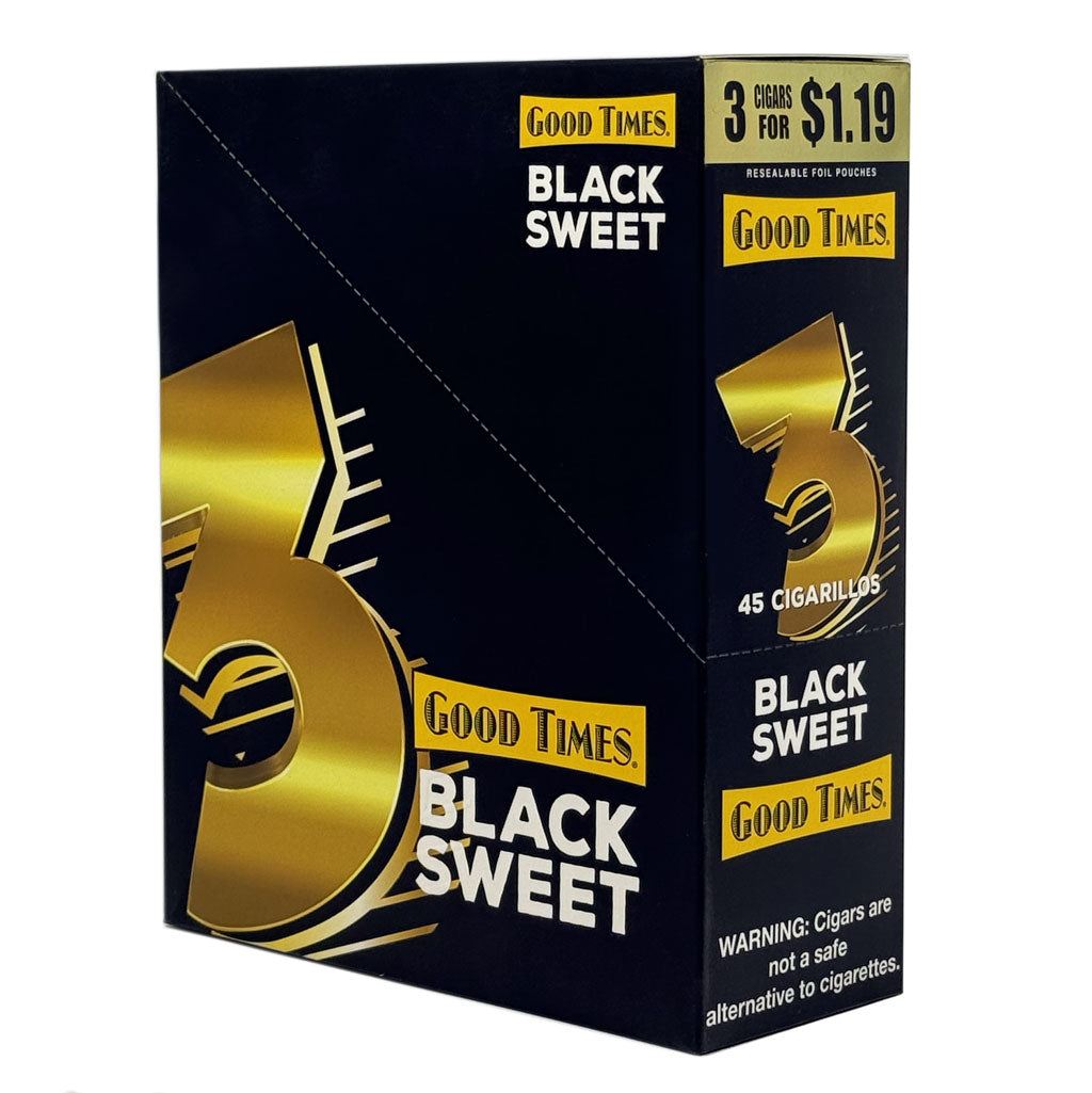 Good Times Black Sweet Cigarillos (15/3ct) — Cigarillos packaged in a 15-count display. Each display contains 15 packs, with 3 cigarillos per pack. For adult use only. Not for sale to minors.