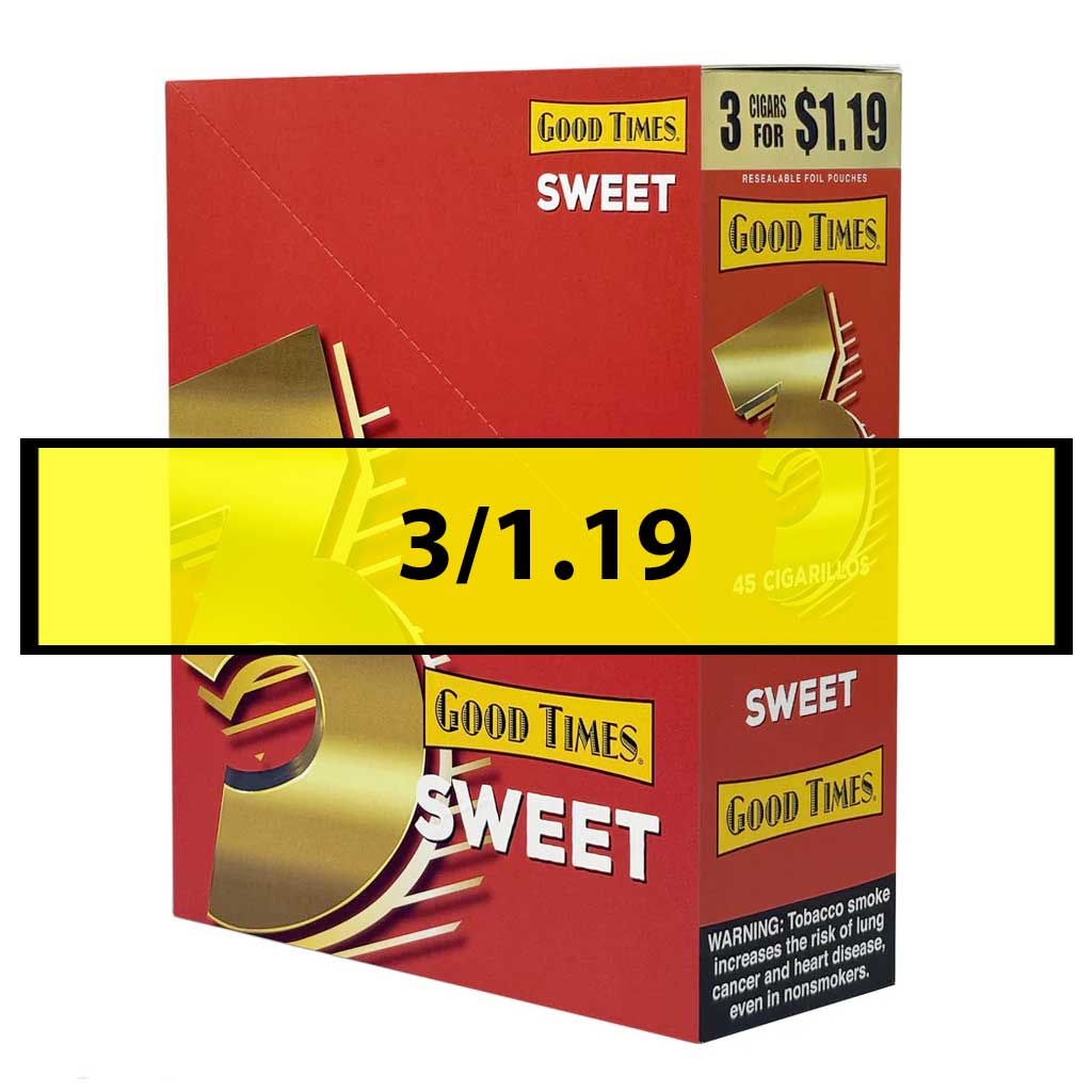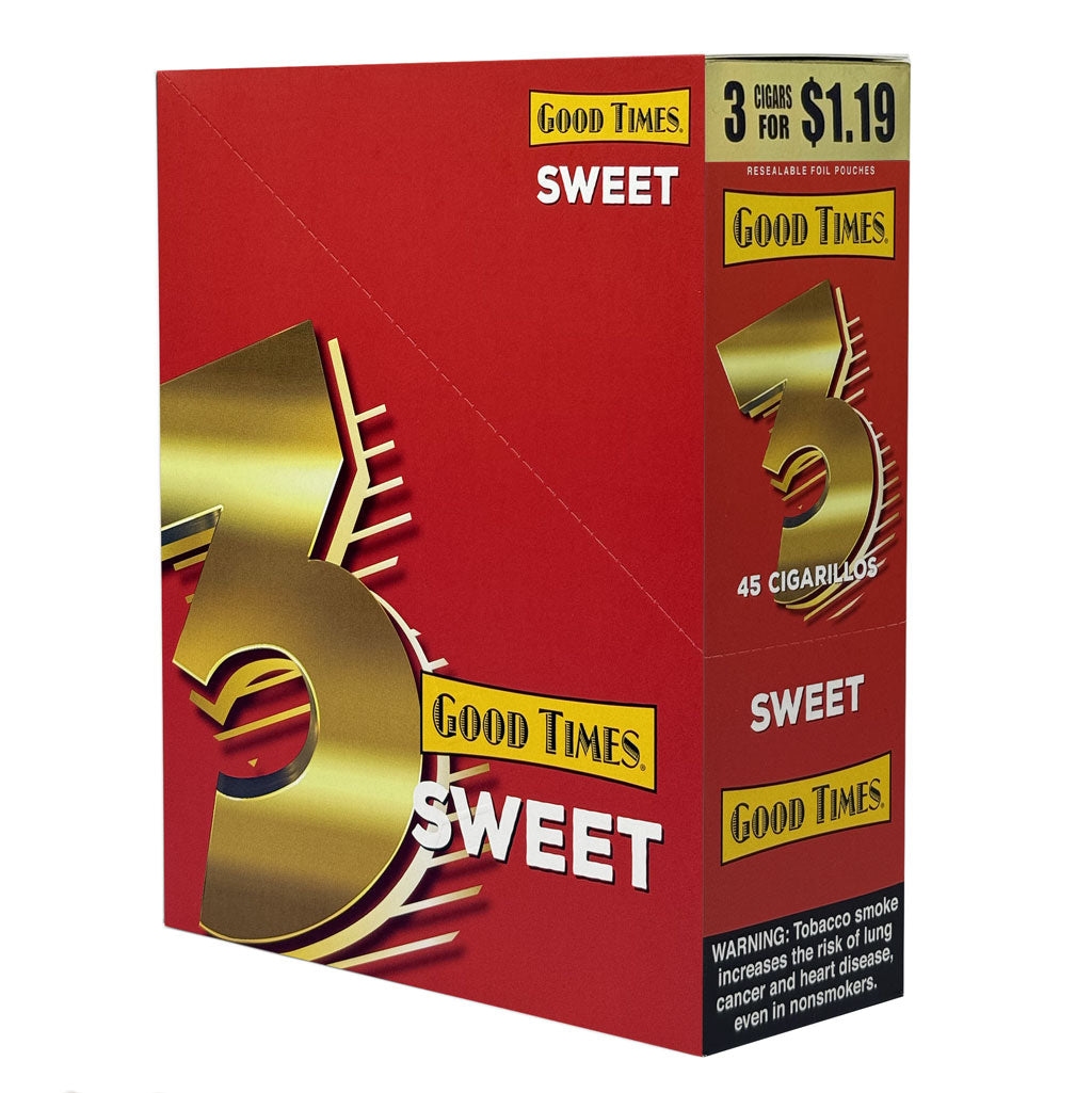 Good Times Sweet Cigarillos (15/3ct) — Cigarillos packaged in a 15-count display. Each display contains 15 packs, with 3 cigarillos per pack. For adult use only. Not for sale to minors.