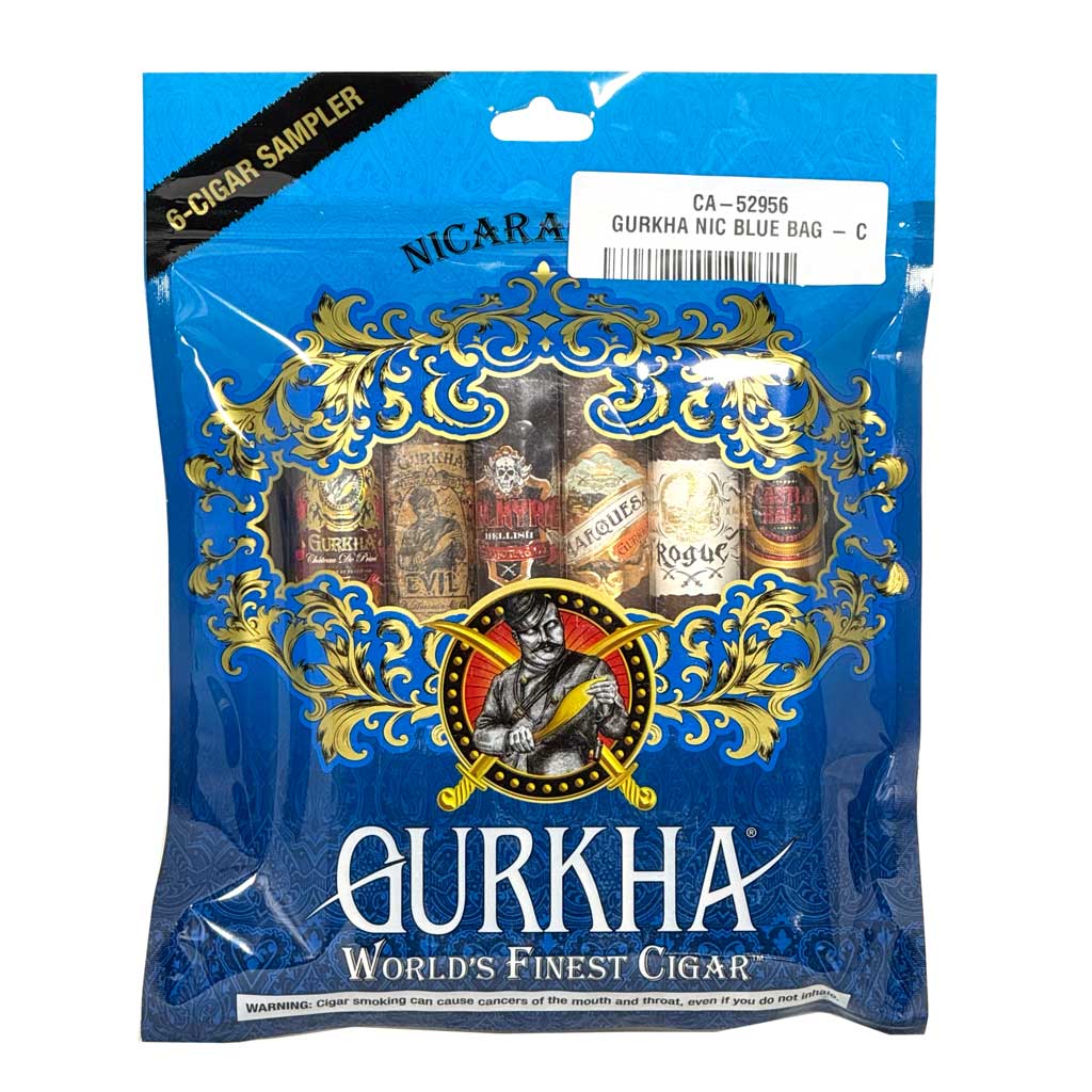The Gurkha Nicaragua Blue 6-Cigar Sampler is a nice way to try a mix of Gurkha favorites without committing to a full box. Each sealed sampler includes six toro-size cigars, giving you a range of flavors from smooth and creamy to bold, spicy, and full-bodied. With blends like the dark and powerful Evil, the mellow Chateau De Prive, the rich Rogue, and the spicy Pure Evil.